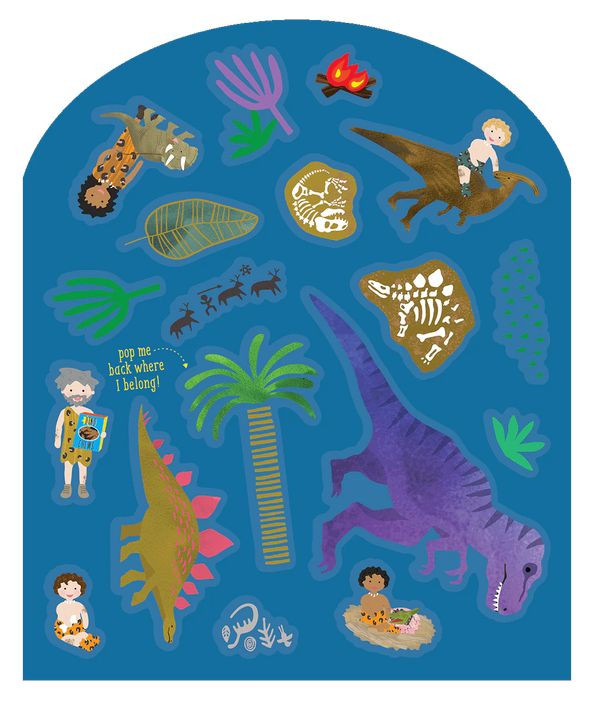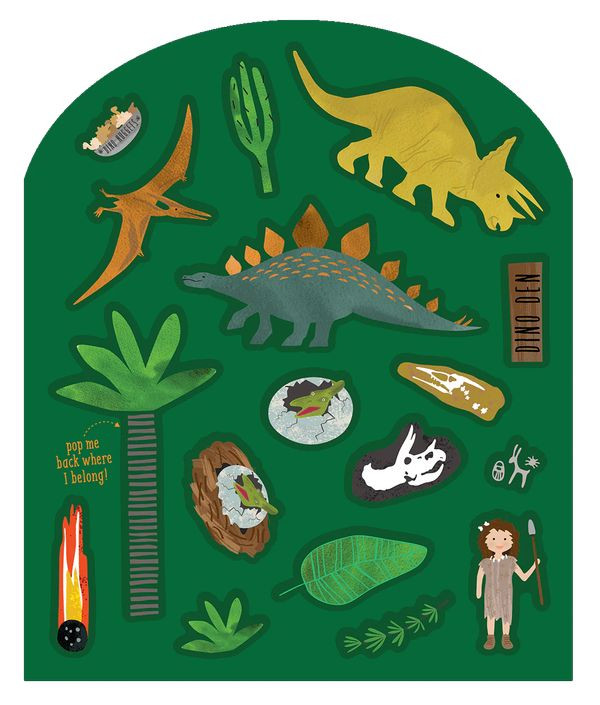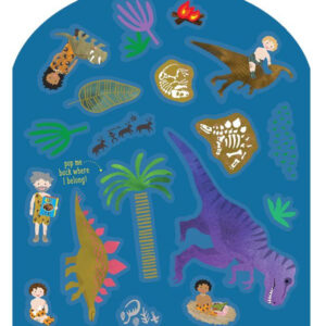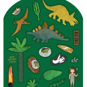 Zestaw naklejek wielokrotnego użytku z planszami Dinozaury to świetna zabawa i nauka jednocześnie. W skład zestawu wchodzi ponad 50 zabawnych, kolorowych naklejek, w tym dinozaury, jaja dinozaurów, jaskiniowców, prehistoryczną przyrodę i wile innych oraz 2 rozkładane plansze ilustrujące park jurajski z jaskiniami do tworzenia i wymyślania historii za pomocą naklejek. Naklejki można łatwo umieszczać, nakładać na siebie i zmieniać ich położenie. Dodatkową zabawą jest dopasowywanie naklejek do ich kształtów na kartach do ich przechowywania. To zapewni maluchom rozrywkę na długie godziny! Zestaw daje maluchom nieograniczone możliwości wyrażania swojej kreatywności, ponadto ćwiczy koncentrację i wyobraźnię, jak i rozwija małą motorykę. Zestaw zapakowany jest w twardą okładkę, składa się całkowicie na płasko, dzięki czemu idealnie sprawdzi się w podróży.
