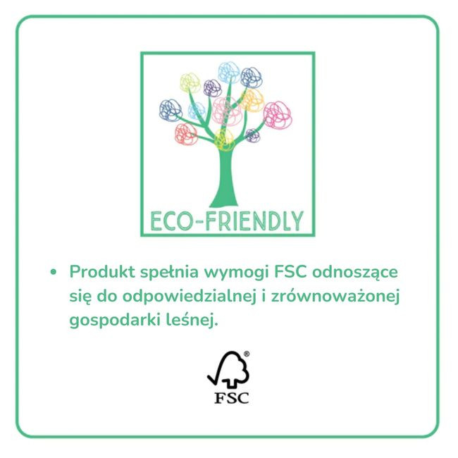 Produkt przyjazny dla środowiska. Produkt spełnia wymogi FSC odnosząc się do odpowiedzialnej i zrównoważonej gospodarki leśnej,