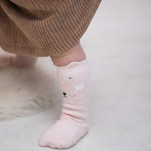 Szczęśliwe stopy z naszymi zabawnymi przyjaciółmi zwierząt! Każde dziecko pokocha chodzenie na palcach po domu w tych uroczych podkolanówkach z naszymi zabawnymi zwierzakami, ich miękkimi uszami i wesołymi kropkami. Wykonane z wysokiej jakości bawełny organicznej w połączeniu z nylonem i spandexem są miękkie, wygodne w noszeniu i dobrze dopasowują się.