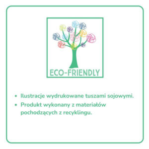 Produkt przyjazny dla środowiska. Produkt wykonany z materiałów pochodzących z recyklingu. Ilustracje zostały wydrukowane tuszami sojowymi.