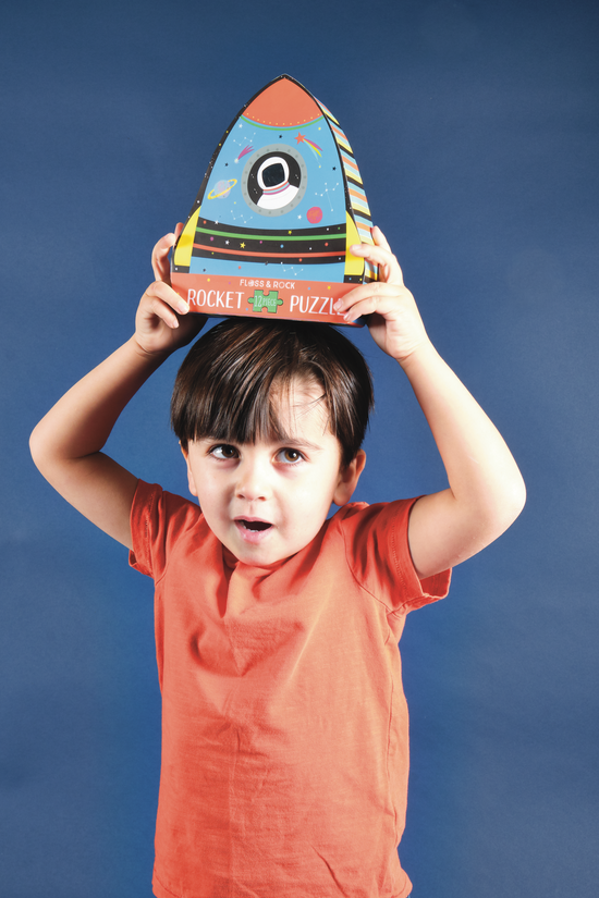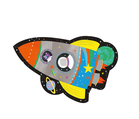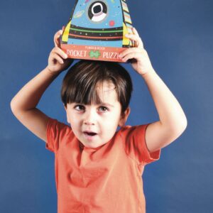 W sam raz, gdy maluchy są gotowe, aby przejść do bardziej wymagających układanek. Puzzle po ułożeniu odkrywają super fajną rakietę w locie, kosmonautę wyglądającego przez iluminator, kosmicznego kota, saturna i konstelacje gwiazd. Idealne dla małych rączek do chwytania, uczenia się i odkrywania.